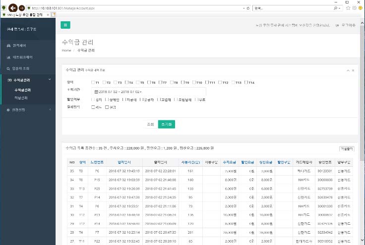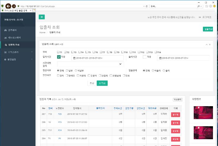 입출차 기록, 분류별 수입금 조회가 가능합니다.
